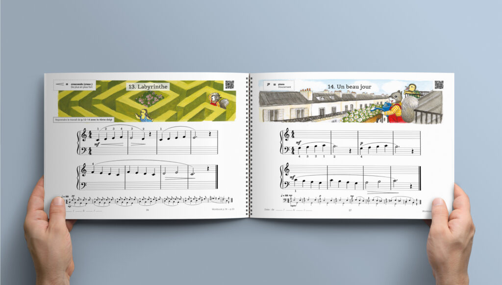 Deux atouts majeurs l’a complètent pour stimuler l’écoute et la créativité: l’originale innovation des QR codes et la pratique du solfège liée au piano. De quoi motiver tous les enfants habités par “le désir de musique”.