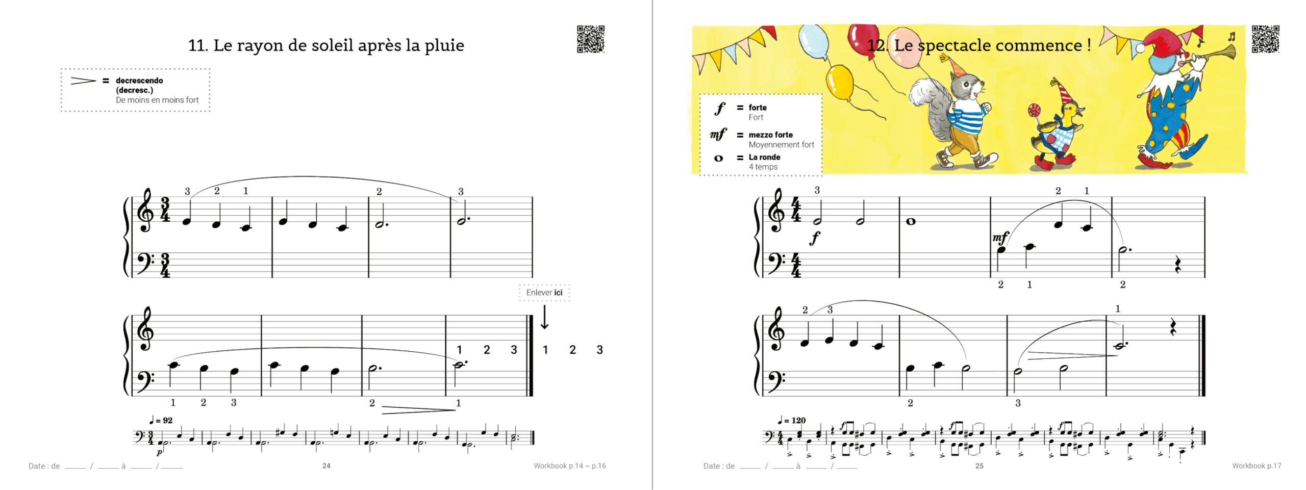 Un Workbook associé à chaque volume permet d’apprendre le solfège et la théorie musicale, de façon ludique et active, afin de pouvoir débuter le piano sans aucune connaissance préalable.